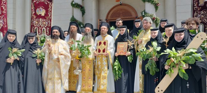 După Sfânta Liturghie, pelerinii și clericii au pornit într-o procesiune cu racla cu sfintele moaște, ritualul fiind marcat de rugăciunile de binecuvântare a frunzelor de nuc și de implorare a Sfintei Treimi. Atmosfera a fost întregită de sunetul de toacă și bucuria participanților, care au primit miruirea și pachete cu bucate alese pregătite de maici.