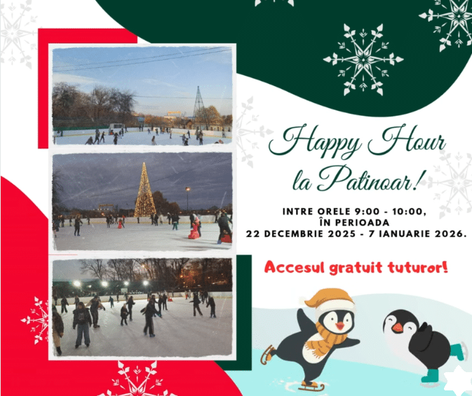 DIAP Tulcea a introdus conceptul de „happy hour” la Patinoarul din zona Lacului Ciuperca, oferind acces gratuit în fiecare dimineață a vacanței de iarnă a copiilor, între orele 9.00–10.00. Acest fapt este valabil începând de luni, 22 decembrie 2025, până miercuri, 7 ianuarie 2026.