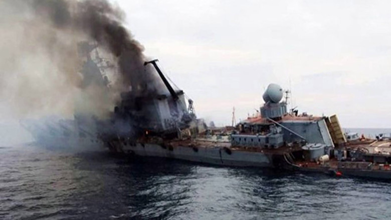 Mass-media ucraineană și observatorii independenți afirmă că două rachete antinavale ucrainene Neptune au lovit crucișătorul Moskva, provocând incendii și deteriorări grave, ceea ce a dus la scufundarea navei de aproximativ 12.000 de tone. În schimb, narațiunea Kremlinului susține că nava s-a scufundat din cauza incendiilor cauzate de un scurtcircuit într-o mare agitată, fără a admis atacul rachetelor ucrainene.