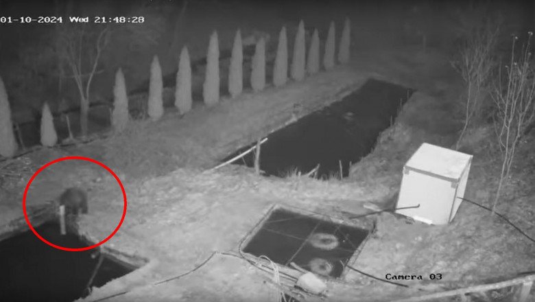 Un urs din Apuseni a eliberat peștii din păstrăvăria sa